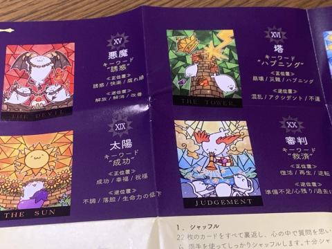 それぞれのカードの意味と占い方が書かれたリーフレットも付属してました