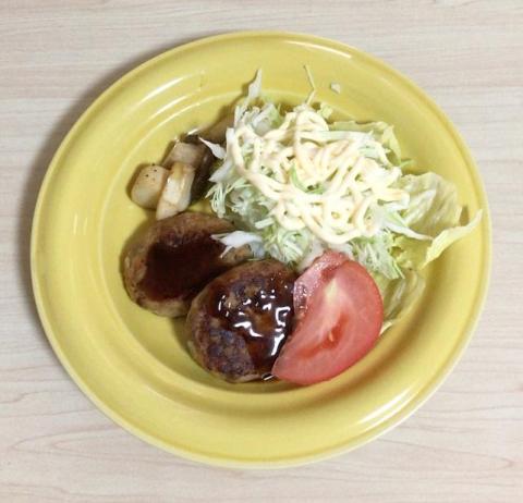 (「牛肉100%」などと謳っている物よりも平均的日本人には食べ易いが、「本当のハンバーグ好き」には物足りない)