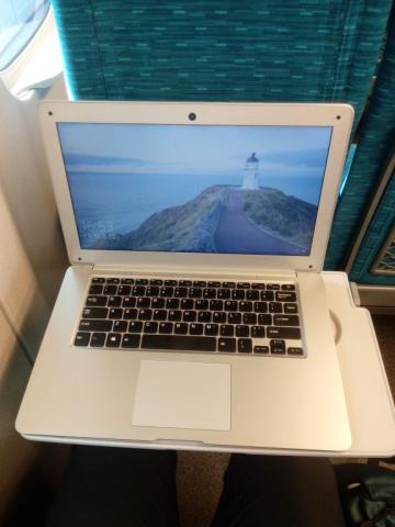 東海道新幹線のN700Aは、比較的テーブルが広いのですが、それでも14インチの中華ノートPCなどをテーブルに乗せると、ほぼめいっぱい占有してしまいます。