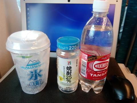 東京駅で売っているカップ氷を買えば、焼酎セットの出来上がりです。(これは別の日です)