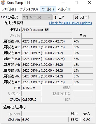 BIOS上のファン回転設定(使用ファン:山洋電気 F12-PWM)が90度以上にしてあるので冷えてないように見えています。 60度以上でファン回転数が全開(=2850rpm)になるようにBIOSの設定を変えれば温度の結果は変わると思います。
