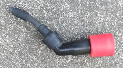 中継器らしきものが中央に見えますが、これにだけ極性(?)があり矢印方向がプラグキャップ(青)に向くように付けます。また、ねじ込みが非常にきついのでシリコーングリースを少々ケーブルに塗布してからねじ込んだ方がやりやすかったです。