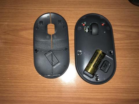電池蓋はマグネット固定で電池は単3×1、USB接続時のレシーバもこちらに収納できます。