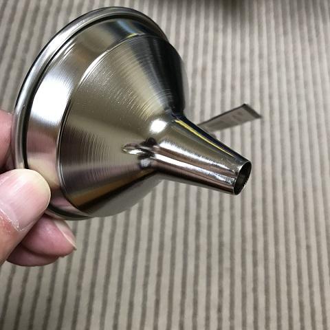 移し替えになるといつも難儀して入れ、こぼしたらタオルなどで拭いて時間がかかって仕方ありませんでした。漏斗があれば一発解消ですね。
