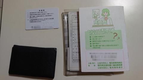 体にちっさなAED(除細動器)などを植え込んでいるといつ何が起きてもよいように、そのハードウェア設定状態などが記されたICD手帳とか厄介な薬(バイアスピリンとか)も飲んでる状態がかかれたお薬手帳、通院している各医療機関の診察券国民健康保険証・身体障碍者手帳・保険証など結構な量のブツを持ってまわらないといけません。
