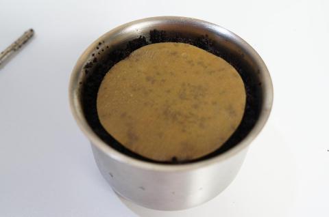 ③ 湿らせたパウダーをならし、もう1枚の丸形フィルターを湿らせてその上に置きます。