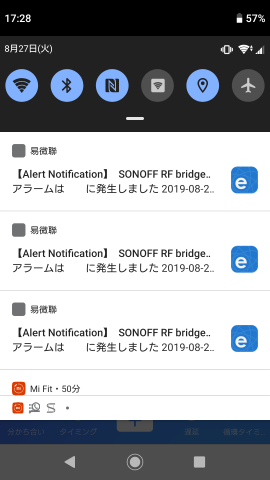 センサーが反応するとこのように通知が来ますが、アプリ起動中にしか通知来ません。