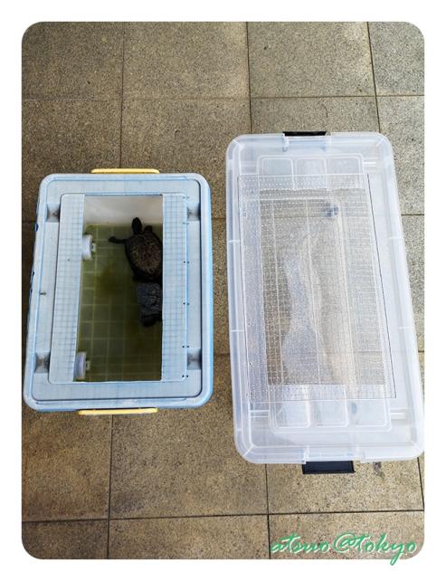 しかしペットショップで売られている大きい水槽は高価なので、もっと安価な入れ物は無いかと探して見つけたのが衣装ケースでした。