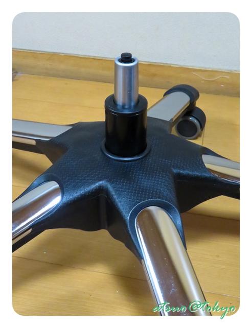 まずガスシリンダーの細い方を上にして、脚部に挿し込みます。
