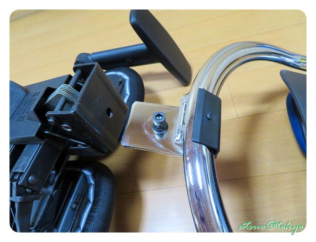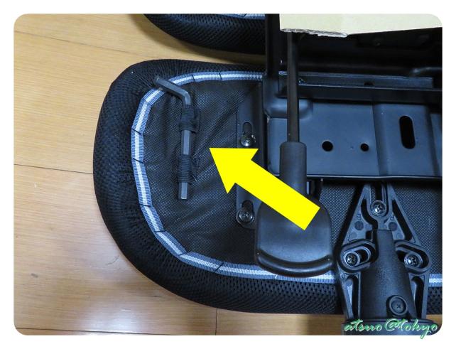 下図の様に座面後部の穴に挿し込み、六角ネジで留めます。