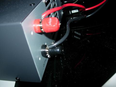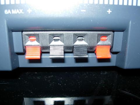 出力は背面の大型ターミナル端子と正面のプッシュ挟み込み式の端子とシガーライタタイプのコネクタです。