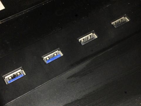 原則としてコネクターの色で見分けられるようになっており、青いのがUSB3.0、黒やグレーのものがUSB2.0です。