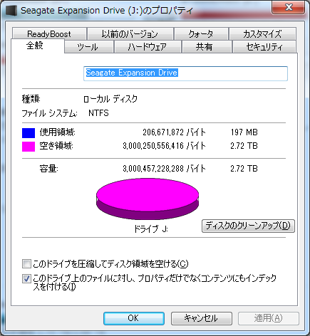 まず、出荷時のフォーマット形式ですが、NTFSとなっていました。家電用途よりはPC接続を想定した仕様といえそうです。