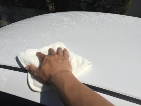 洗車をして、水分の拭き取りにマイクロファイバークロスを使います。