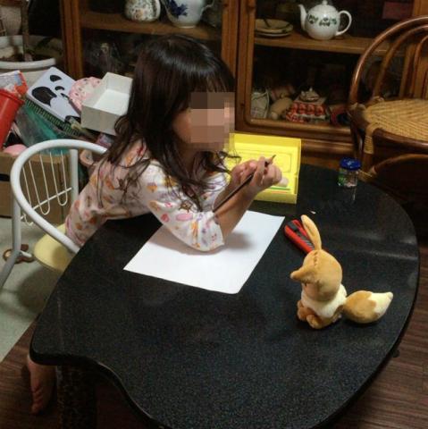 4歳の子が、早速、今削った鉛筆を使って絵を描きました。