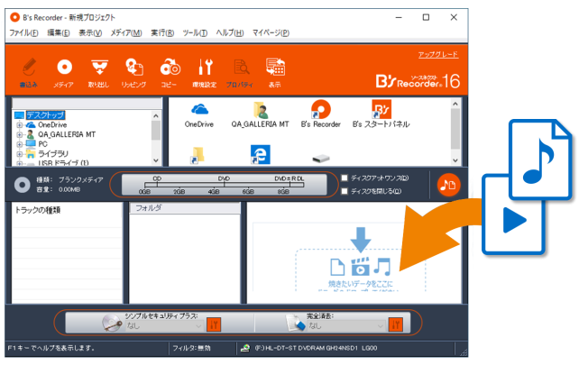 B's Recorderは、CD/DVD/Blu-Rayディスクのライティングソフトウェアです。