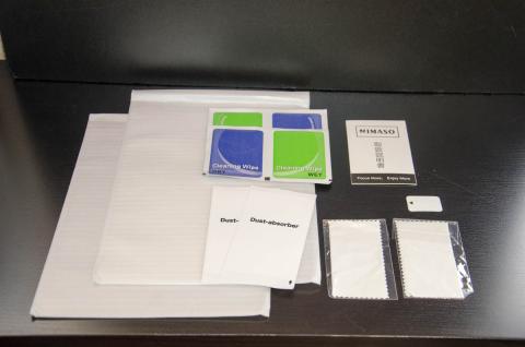 ・貼り付け用具2式(乾&湿紙ワイパー/無塵布/気泡取りカード/取説)