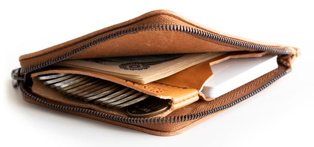 また二つ折りにした紙幣の折った部分はファスナーとは反対側に収められるようになっており、ファスナーと擦れる事がありません。