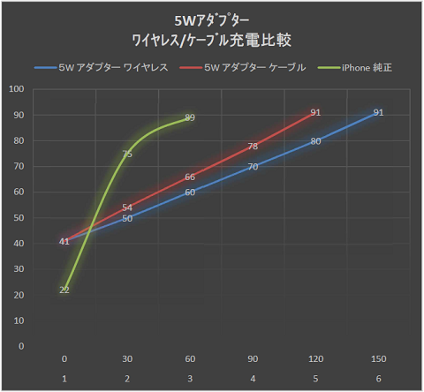 iPhone7の昔から有るアダプターを5wと仮定してグラフ化してみました。