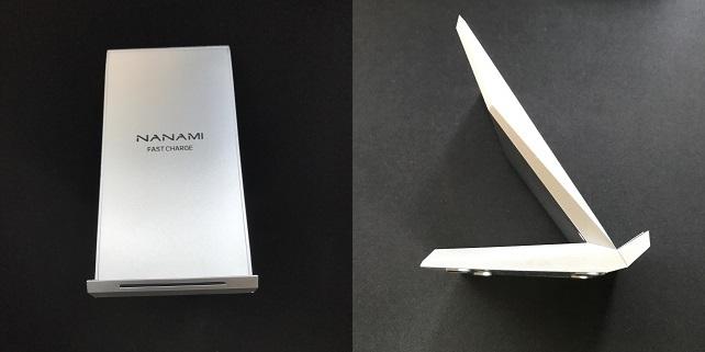 置き方タイプのスタンド型デザインでガンダムチックな見た目仕様。立てて充電するなり横置きにして動画見ながら充電したりも出来ますね。デスク上のiPhone置き場としても活用できます。
