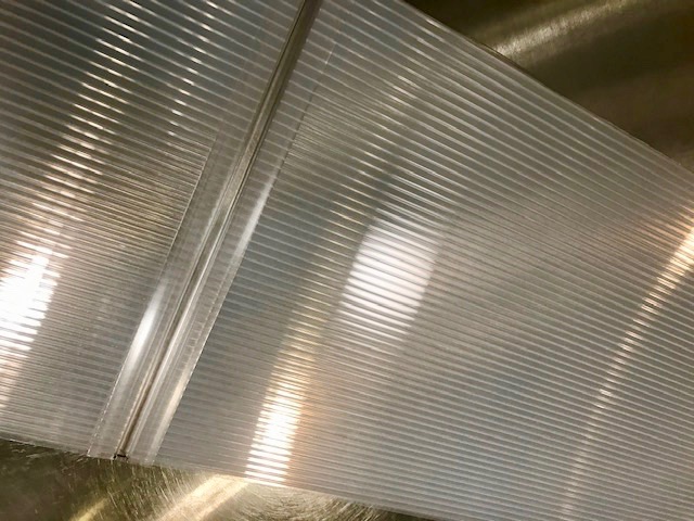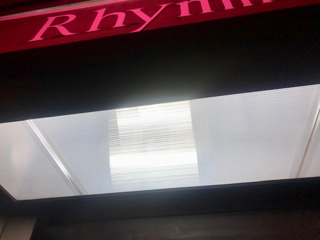 ポリカ中空ボードをお店の玄関ドア上の照明器具隠しに使いました