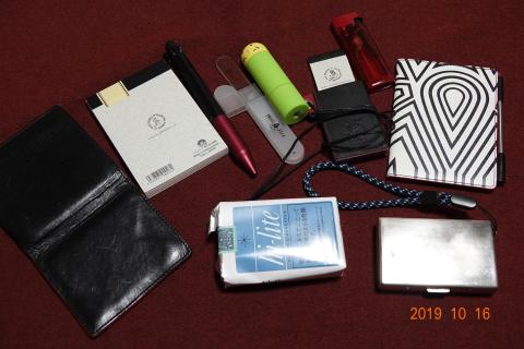 メモ帳3、煙草、灰皿、ライター、ペン、爪磨き、財布 ウエットティッシュ
