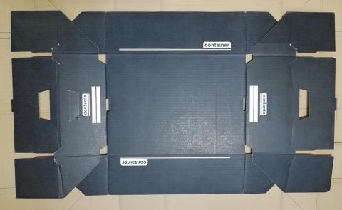 型抜きされたダンボールを折って組み立てるコンテナボックスですが、これを型紙にして少し大きめの箱を作りました。
