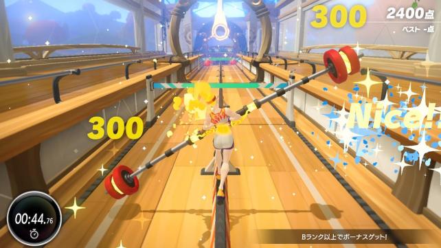 フィールド自体にもいろいろギミックがあり、スクワットをしたり、お腹にリングコンを押し当て左右にブンブンしたりと、ひたすら筋力が鍛えられます。