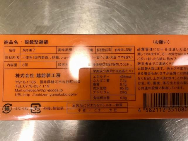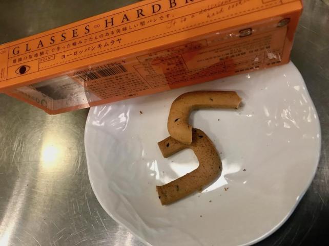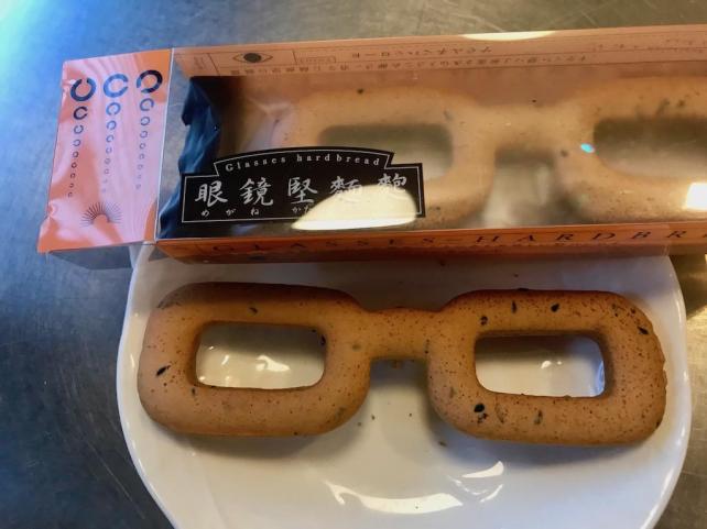 福井のお土産として そのメガネフレームを 堅パンで再現したモノをいただきました