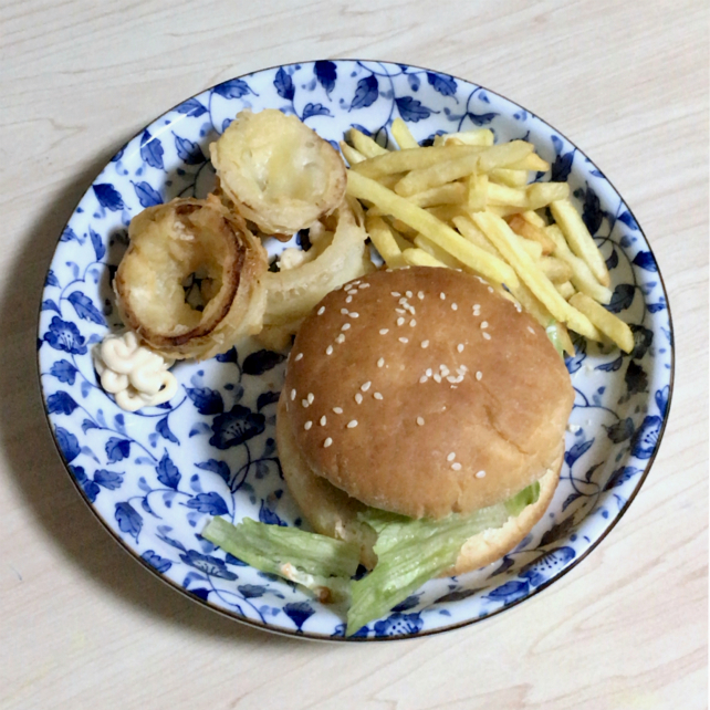 とてもシンプルに、普通の味付けのハンバーグを挟んだだけの「バーガー」です。