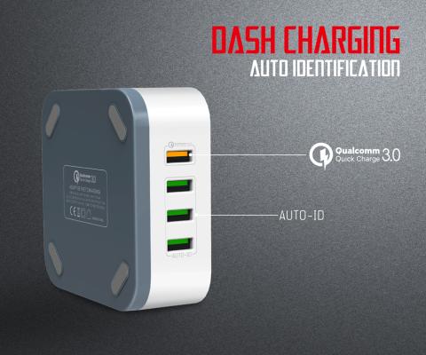 QC3.0は1ポートのみ。残り7ポートは自動ID(Auto-ID)