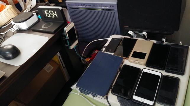 理由は古いスマホ達。一斉に充電できるスポットになりました。