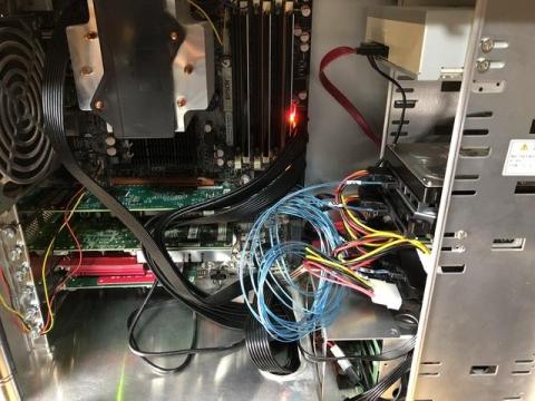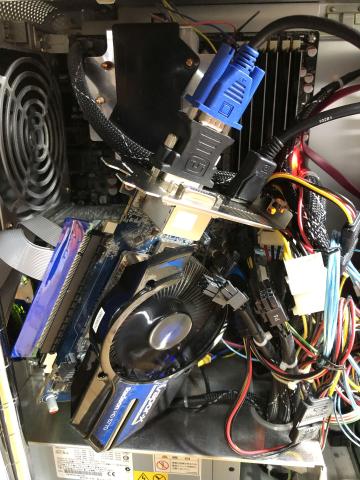 結果として、Radeonをx16→x4で無理やり使っていましたが、GeForce 210(PCIex1接続)になった為に配線も↓のようにすっきり。