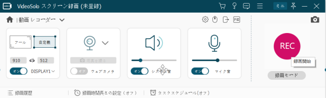 VideoSoloスクリーン録画を起動しみれば、付く機能は直感でしょう。私はよく使っているのは録画機能です。