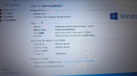 中古品を入手しました。入手時点でSSD化の上 Windows 10 にアップデート済みです。その他はおそらく出荷時のままです。