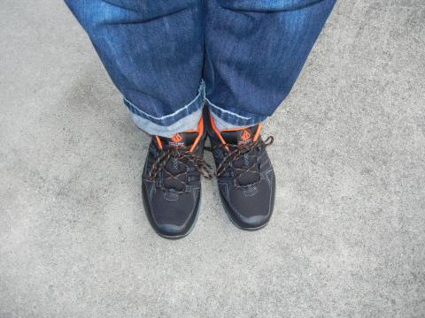普段通勤時はこんな感じで、ジーンズにこのモデルを履いています。