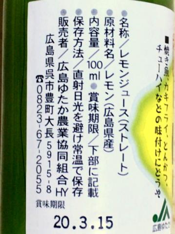 広島ゆたか農協 生レモンしぼり 100ml です。