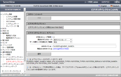アドバンスドビデオリダイレクションにより、接続しているマシンの外部記憶装置を、サーバ本体のリモート接続装置として認識させる機能です。