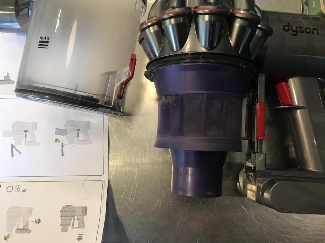 取説に従って、キャニスター部を本体から取り外します(ネジはなくはめ込み部を外す形です)