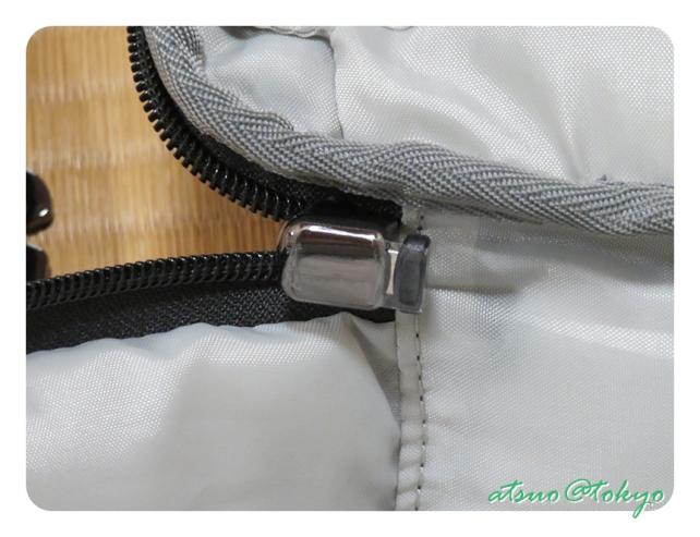 そしてメインのジッパーは見ての通り防水タイプになっていますが、表側のポケットのジッパーは普通のタイプです。