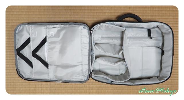 クッション付きの間仕切りは外せるようになっており、私はカメラバッグとして使う予定は無いので外したままです。