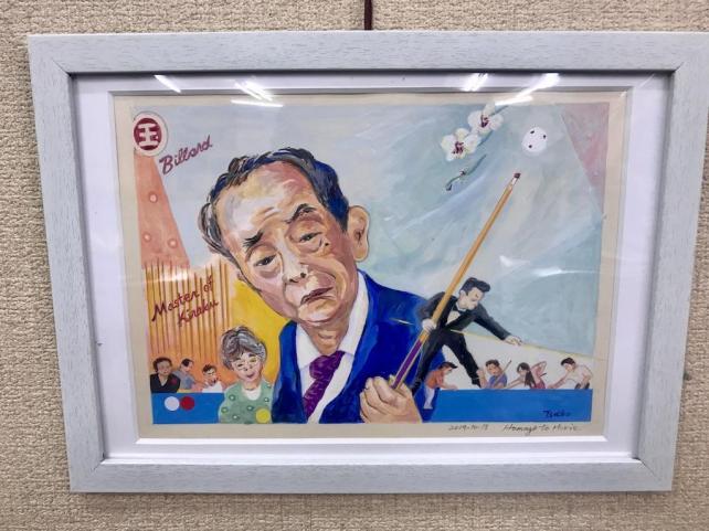 キューを構えている様子は、遺影に選んだ「父親の最盛期の頃の写真」がモチーフだと思います