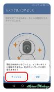 上図が表示されずに下の様にネットワーク切替ダイアログが表示されたら、カメラに接続したままにするように「キャンセル」をタップしダイアログを閉じます。