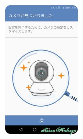 ・連携後に Tapoデバイス(C200)を検出するので、画面の指示に従い設定を行います