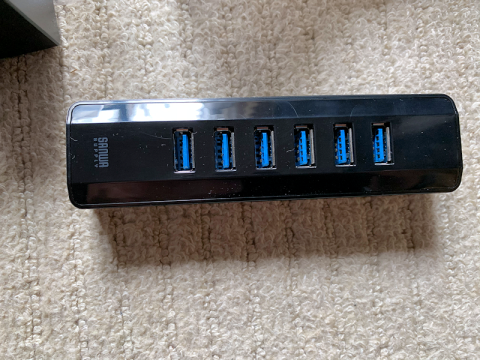 代品となるUSBハブには、いくつか条件がありました。まずは当然ながらUSB3.0以上に対応していること、そして7ポート以上のセルフパワー対応品ということです。さらに、いちいちPC背面の配線を入れ替えるのが面倒なので、そのまま差し替えが利くようハブの入力端子がmicroUSB3.0メス形状であることが望ましいというものでした。設置スペースもそれほど取れないため、大きさもあまり大きくない方が有難いという条件もあります。