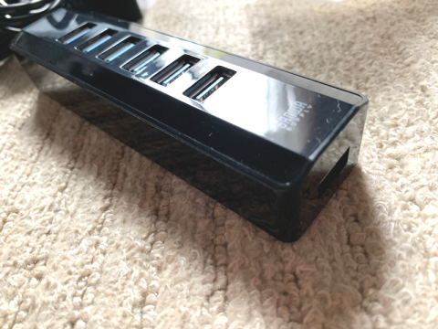 本体が小さいため、本体上部の6ポートは比較的距離が近く、あまり大きな機器を挿してしまうと、隣に挿した機器と干渉してしまう恐れは少々ありますが、実用上これと言って大きな問題は無いと思います。
