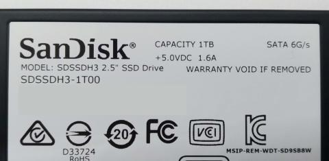 SSDの裏面は何の変哲もないSATA 6G/sだったり、容量1TBを示したりと面白みのないラベル。