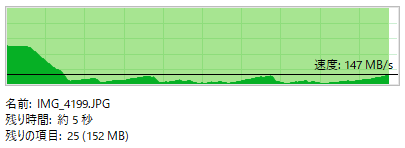 1ファイル5MB~7MBの640個のファイルを用意して一気にコピーしてみます。