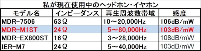 次に、我が家で頑張ってくれているイヤホン・ヘッドホンとの比較表を作ってみました。