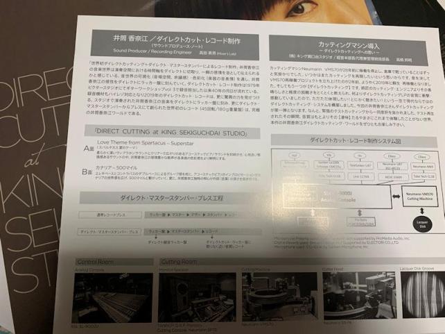 今となっては、世界的に見てもダイレクトカッティングレコードを制作できるスタジオは英国アビーロード・スタジオか日本のキングレコード関口台スタジオだけということで、恐らく現時点で量産できるレコードとして最高水準の音質を持つということになるでしょう。